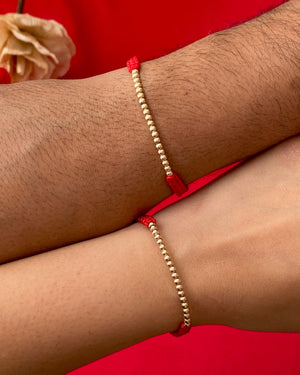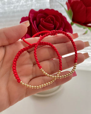 Par de manillas en hilo rojo con balines en oro laminado 18K. Ajustables, elegantes y perfectas para compartir en pareja. 💕 Solo $90.000 el par.